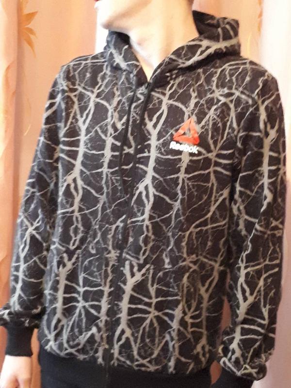 Толстовка Reebok на блискавці з капюшоном. Плоский витяжний шнурок Тканина: трикотаж із начосом. Дві передні кишені-кенгуру.