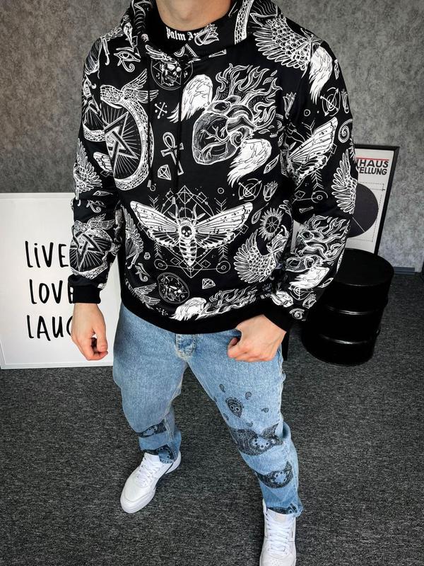 Чоловічий худі - це верхній одяг, який має форму куртки з фіксованим капюшоном. Він зазвичай зшитий з тканини, яка має високу щільність, щоб надавати тепло під час холодної погоди. Чоловічі худі можуть мати кишені на передній частині, декоративні елементи, такі як принти або логотипи, і можуть бути доступні у різних кольорах. Вони часто використовуються як повсякденний одяг або для занять спортом. Таблиця замірів: РозмірГрудиРукавДовжина кофти S51 см.73 см.66 см. M56 см.76 см.67 см. L59 см.81 см.72 см. XL62 см.83 см.75 см.