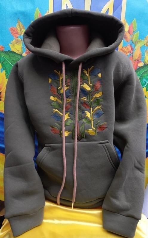 Оригінальне худі з вишивкою. Актуальний колір. Вишивка Гарне та тепле - прекрасний подарунок чоловіку, та ще й воєнному. Розміри 48 48: Груди - 63, рукав - 61, плечі - 43 (спушений рукав - тому рукав і плечі відносні заміри), довжина - 66 Швидка відправка