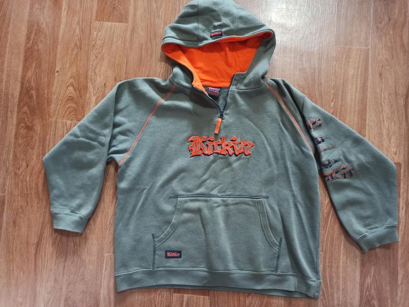 Необычное худи Kickin цвета хаки с оранжевыми элементами Размер мужской S, если на девушку то s/m в хорошем состоянии, нюансов нет Для скейтеров то что надо😉