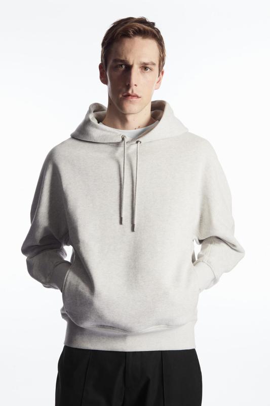 Склад: 50% перероблена бавовна, 50% органічна бавовна HEAVYWEIGHT PANELLED HOODIE класичний худі виготовлений із переробленого та органічного бавовняного трикотажу задня панель має витончену структуру капюшон має шнурок у тон із сріблястим металом розслаблений крій бічні кишені, обробка в рубчик