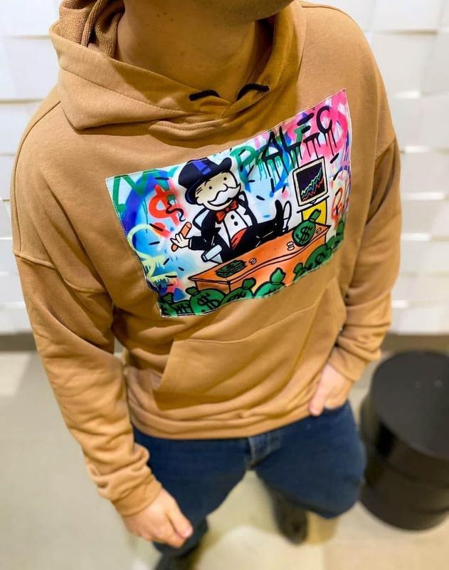 Чоловічий худі з принтом - це модний та стильний верхній одяг, який поєднує комфорт спортивного стилю з індивідуальним виразом завдяки виразному дизайну на передній частині. Чоловічі худі з принтом підходять для повсякденного носіння, вільного часу, активних вихідних, походів на природу або просто для створення незвичайного образу. Ви можете поєднувати худі з принтом з джинсами, спортивними штанами або іншими варіантами низу, а також доповнювати стиль аксесуарами, такими як кепка, окуляри або шапка. Цей одяг - це не лише зручний варіант для вільного часу, але і спосіб виразити свій стиль та особистість завдяки вибору унікального принту. Таблиця замірів: РозмірГрудиРукавДовжина кофти S55 см.75 см.66 см. L58 см.77 см.72 см. XL63 см.79 см.73 см.