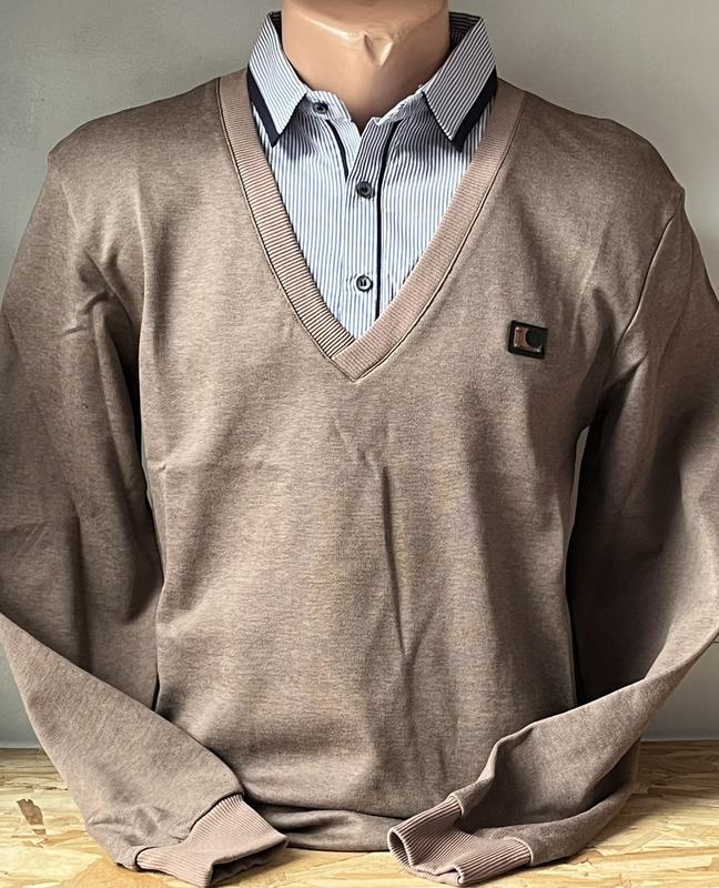 Оригінальна, зручна, стильна кофта обманка. Імітація що сорочка в поєднанні з кофтою. І зручно і по діловому😉. Розміри: L. XL ЗАМІРІ L: плечі-47; обʼєм грудей-48; обʼєм талії-46; довжина по спинці-69; довжина рукава-62; комір-39/40 XL: плечі-48; обʼєм грудей-52; обʼєм талії-50; довжина по спинці-72; довжина рукава-63; комір-40 /41
