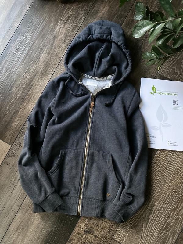 Фирменная толстовка на замочке, качественные материал и фурнитура, б/в, состояние отлично. Размер указан xs, но подойдет на С. Замеры по запросу.