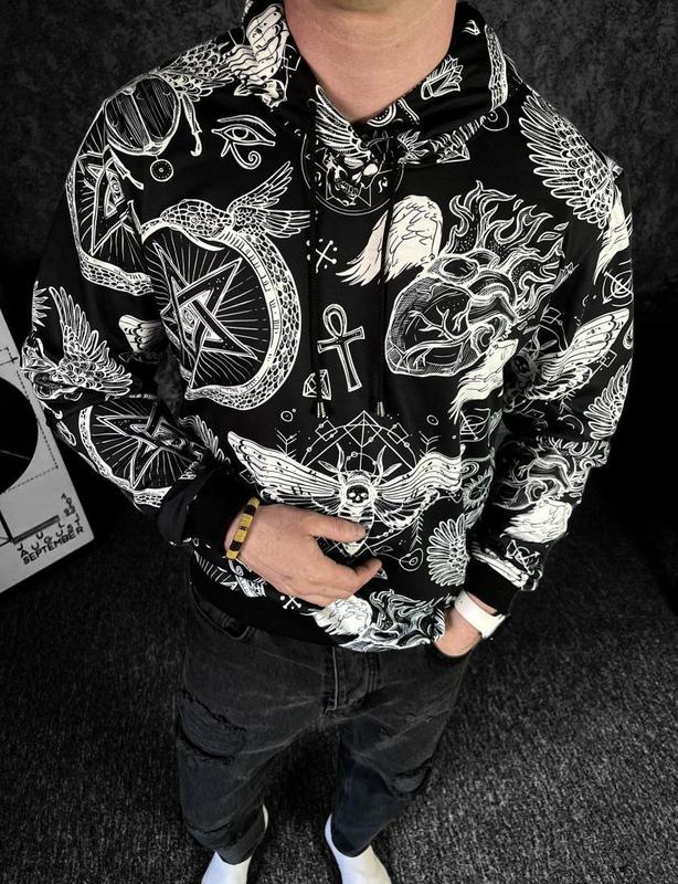 Чоловічий худі - це верхній одяг, який має форму куртки з фіксованим капюшоном. Він зазвичай зшитий з тканини, яка має високу щільність, щоб надавати тепло під час холодної погоди. Чоловічі худі можуть мати кишені на передній частині, декоративні елементи, такі як принти або логотипи, і можуть бути доступні у різних кольорах. Вони часто використовуються як повсякденний одяг або для занять спортом. Таблиця замірів: РозмірГрудиРукавДовжина кофти S51 см.73 см.62 см. M56 см.76 см.63 см. L59 см.81 см.66 см. XL62 см.83 см.68 см.