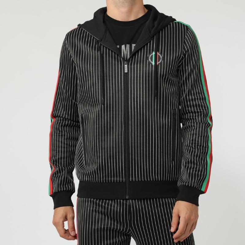 Заміри: Довжина 66, ПОГ 54, Рукав від плеча/від пахви 66/50, Плечі 45 Толстовка з довгими рукавами, застібкою-блискавкою спереду, візерунком у дрібну, фактурну смужку Колір Чорний, білий і кольоровий матеріал 49% віскози, 26% поліаміду, 21% поліестеру та 4% еластодієну Вставка: 99% бавовни та 1% еластодієну Підкладка 1: 100% бавовна Інструкції з догляду Машинне прання за 30 °C Вартість у Німеччині до розпродажів 275 євро