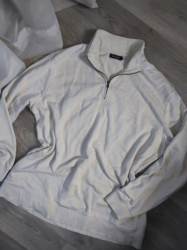 Светлый свитшот на пол застежки в стиле оверсайз светлый, кремовый цвет, троехнитка