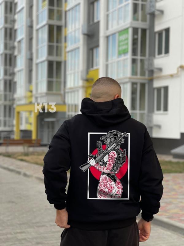 Худі тринитка начос чорний. з принтом military