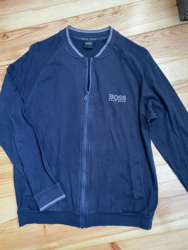 Гарна чоловіча спортивного плану кофтина, на замку, з карманами, півобʼєм грудей 56,довжина рукава від шиї75,довжина 67, в темно синьому кольорі, з воротніком стойка