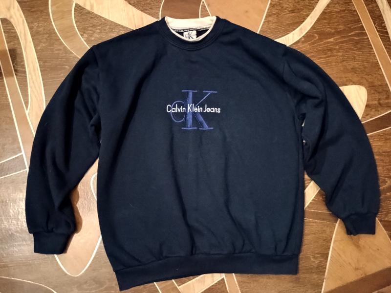 Толстовка чоловіча Calvin Klein made in USA розмір M Довжина 70 см Ширина 57 см Довжина рукава від шиї 78 см На рукаві є пляма на фото видно