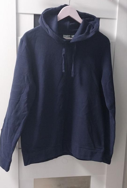 Толстовка, Худі Crane р.М(48/50) Чоловіча, синього кольору, розмір по бірці 48/50, склад: 68%бавовна, 32% поліестер, з капюшоном та без кишень. В хорошому стані! Вдягнута декілька раз та випрана - дуже обтягує животик) Заміри: плечі 46см, грудна 55см, довжина по спині 69см, довжина рукава 67см.