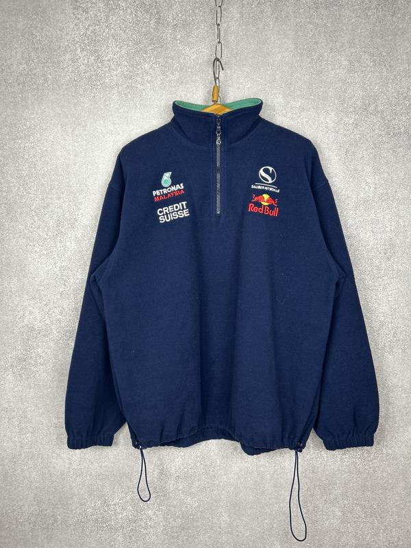 Рідкісний колекційний одяг команди Формули-1 — оригінальна командна річ, а не сучасний мерч. Ідеально підійде для фанатів F1, колекціонерів або тих, хто любить стильні спортивні вінтажні речі. • Глибокий темно-синій колір • М’який фліс зовні та всередині • Контрастна бірюзова підкладка • Напівзастібка (1/2 zip) з металевим бігунком • Логотипи спонсорів: Petronas Malaysia, Credit Suisse, Red Bull, Sauber Petronas • Еластичні манжети • Регульований низ на шнурівці • Стильний вінтажний oversize-силует • Заміри вказані на фото 📸 Стан: Відмінний, майже як нова. Дуже чиста, без дефектів