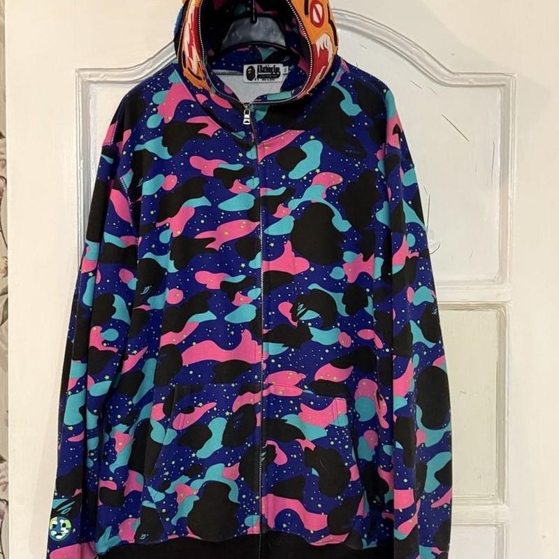 Зип худи Bape, очень яркая и стильная. В носке была не долго, состояние отличное. Длина-75, полуобхват в груди-60 см.