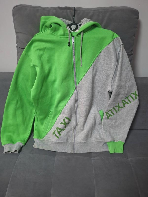 худи на блискавці (також відоме як сіпка або толстовка на блискавці) у сіро-зеленому дизайні з написами "TAXI" толстовка тепла начес із флісу ,капюшон ,бічні кармани розмір Л-ХЛ заміри дл 75см,ог 64см,рукав від горловини 80см