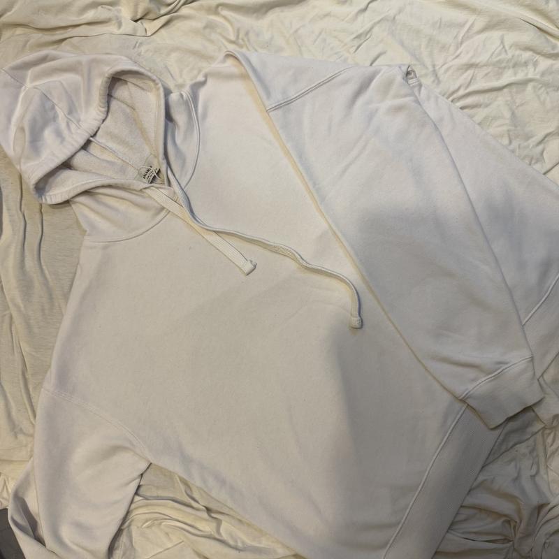 Біле худі з капюшоном. Класичний фасон. Гарно сяде на М та L. Склад 60% поліестер та 40% котон.