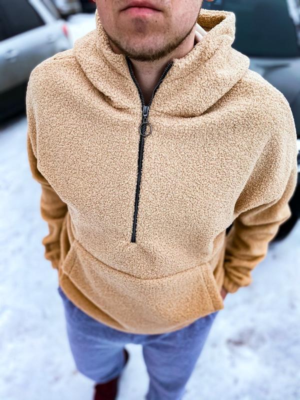 Можно смело носить вместо куртки ,нереально тепло и приятно к телу ТОП-качество, свободный крой Мягкий искусственный мех «борг» Фактурный материал, имитирующий овчину Защищает от холода Не съемный капюшон Короткая застежка-молния Длинные рукава