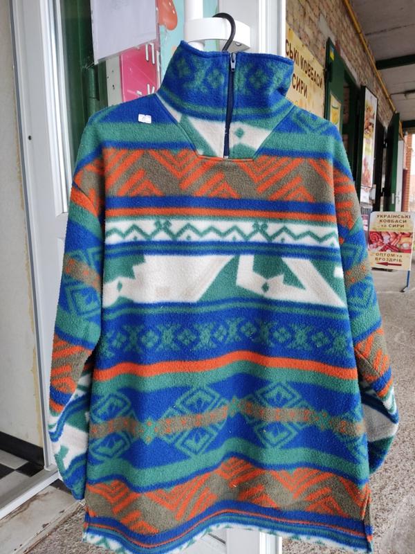 флісова кофта З грудей під рукавами 66 см Довжина виробу спереду 74 Довжина виробу по спині 82 Довжина рукава 60