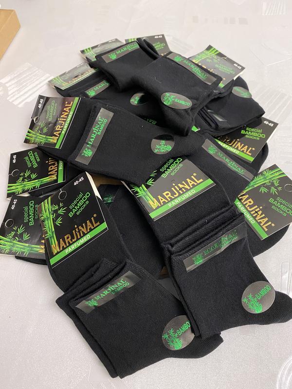 Бамбукові чоловічі шкарпетки середньої довжини. Парфумовані. Колір чорний. Дуже м'які та приємні до тіла. Гумка не здавлює ногу. Добре сідають по нозі. Дають відчуття комфорту. Завдяки бамбуку у своєму складі, мають антибактеріальну дію. Перешкоджає появі неприємного запаху. На розмір 40-45. Склад: 90% бамбук, 5% поліамід, 5% еластан. Виробник: Туреччина