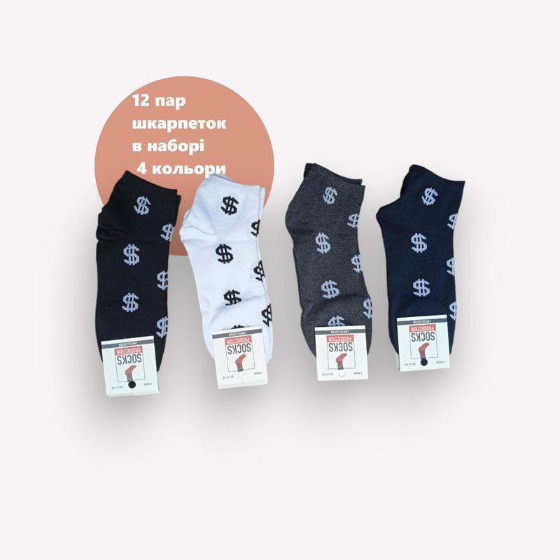 Шкарпетки 12 пар у наборі БАКС принт 41-45 розмір Набір з 12 пар шкарпеток БАКС принт (розмір 41-45) - це ідеальний вибір для тих, хто цінує якість, комфорт та стиль. Ці шкарпетки виготовлені з високоякісних матеріалів, які забезпечують максимальний комфорт при щоденному носінні. - Матеріали: - 80% бавовна: Забезпечує м'якість і повітропроникність, дозволяючи вашим ногам дихати і відчувати комфорт протягом усього дня. - 17% поліамід: Додає міцності та довговічності шкарпеткам, завдяки чому вони зберігають форму та витримують багато прань. - 3% еластан: Забезпечує чудову еластичність, завдяки чому шкарпетки ідеально облягають ногу і не сповзають протягом дня. - Дизайн: - Яскравий і стильний принт, який додасть індивідуальності вашому образу. - Зручний розмір 41-45, ідеально підходить для більшості чоловіків. - Переваги: - Комфорт: Високий вміст бавовни забезпечує м'якість і комфорт, запобігаючи появі неприємних відчуттів навіть при тривалому носінні. - Довговічність: Завдяки поліаміду шкарпетки довго зберігають свій початковий вигляд і форму. - Ідеальна посадка: Еластан забезпечує необхідну еластичність, завдяки чому шкарпетки відмінно сидять на нозі і не викликають дискомфорту. Ці шкарпетки стануть чудовим доповненням до вашого гардеробу, забезпечуючи стиль і комфорт у кожній парі.