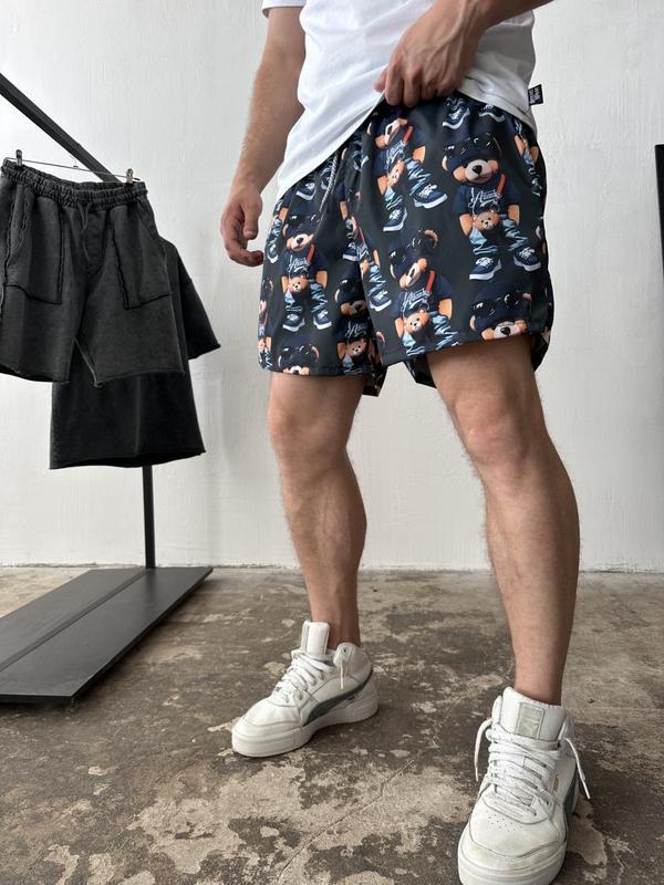 Відкрийте для себе наші стильні пляжні шорти, які поєднують комфорт і бездоганний дизайн. Виготовлені з легкого і дихаючого матеріалу плащівки, ці шорти забезпечують чудову вентиляцію під час спекотних днів. Внутрішня сіточка додає ще більше зручності, що робить їх ідеальними для пляжного відпочинку або активного дозвілля. Яскравий малюнок і темно-синій фон нададуть вашому образу оригінальності. Не пропустіть можливість зробити ваш літній стиль неперевершеним!