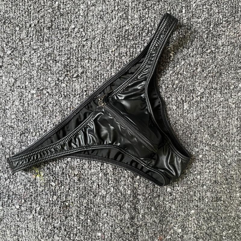 Трусы стринги мужские латексные черные кожзам с доступом на змейке xs-s новые