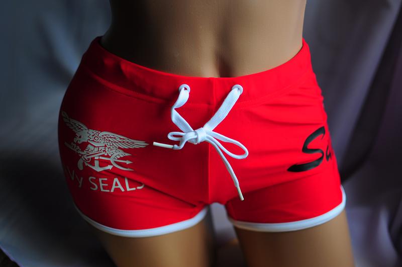 Круті червоні щільні чоловічі плавки шорти "піхотинець" 16820 з емблемою морських котиків...