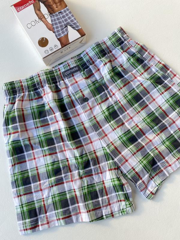 Мужские боксеры Cornette COMFORT (Польша), размер M Классические мужские трусы-боксеры от польского бренда Cornette, выполненные из натурального хлопка. Модель из коллекции COMFORT, в клетку зелёного, белого и чёрного цвета. Удобный свободный крой и мягкая резинка обеспечивают комфорт на каждый день. Идеальны для повседневной носки и сна. ✅ Натуральный хлопок ✅ Размер M ✅ Свободный крой ✅ Пузвица спереди ✅ Яркий клетчатый принт ✅ Сделано в Польше