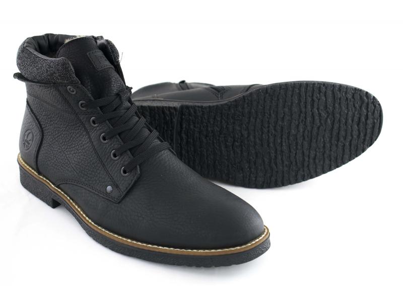 Оригинальные немецкие мужские ботинки из натуральной плотной прорезиненой кожи. Обувь зимняя, утеплена натуральным плотным мехом - цигейкой. На змейке и со шнуровкой в черном цвете.
