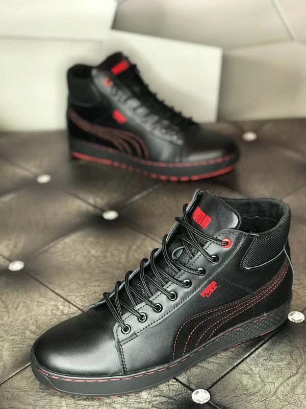 Мужские кожаные чёрные ботинки puma чоловічі шкіряні чорні черевики puma