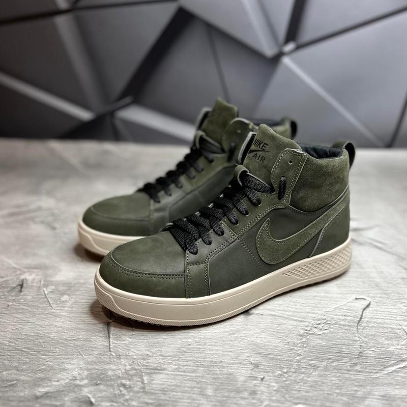Чоловічі зимові черевики з натуральної шкіри та хутра колір хакі nk 211