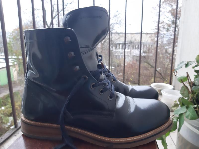 Дуже круті черевики, привезені з Англії. Шкіра(чуть лакована). В ідеальному стані,так як взувались 2 рази. Чоловік ногу зламав. Якість бомба.