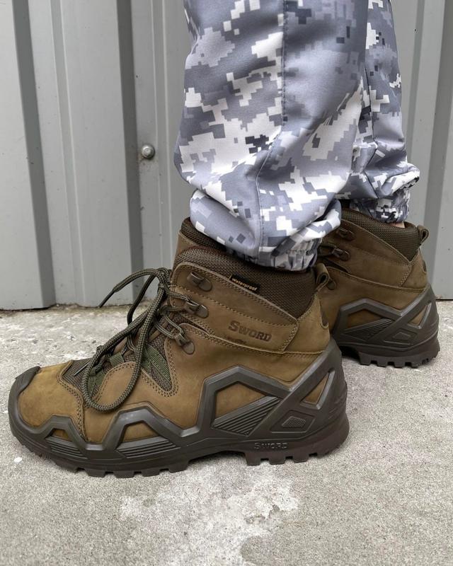 - Матеріал: дихаюча натуральна нубукова шкіра / водовідштовхувальні текстильні вставки з поліаміду Cordura. - Є дихаюча мембрана. - Лита гумова зносостійка підошва. - На шнурках. - Водостійкі. - Посилений підносок і задник з термозміцненого матеріалу забезпечать захист від травм. - Є петлі швидкісної шнурівки. - Зручні в носінні. Розміри: 38, 39, 40, 41, 42, 43, 44, 45