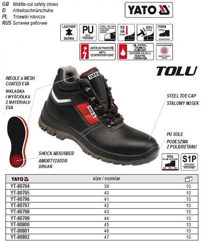 Ботинки рабочие yato польша кожа tolu защита s3 размер 40 yt-80795