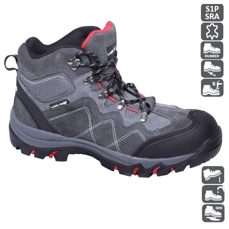 Матеріал: Замша Упаковка: Картонна коробка Підошва: Гума Опис: Високі сірі черевики спортивного крою з червоними і чорними елементами. Підкладка: сітчаста тканина. Устілка: знімна. .Підошва: гумова, з сучасним дизайном, глибокий протектор забезпечує високу стійкість взуття. Металеві петлі. Бічні, м'які подушки забезпечують додатковий захист кісточки. Зовнішня конструкція черевика на передній стороні і задній армований пластик ТПВ. Сталевий