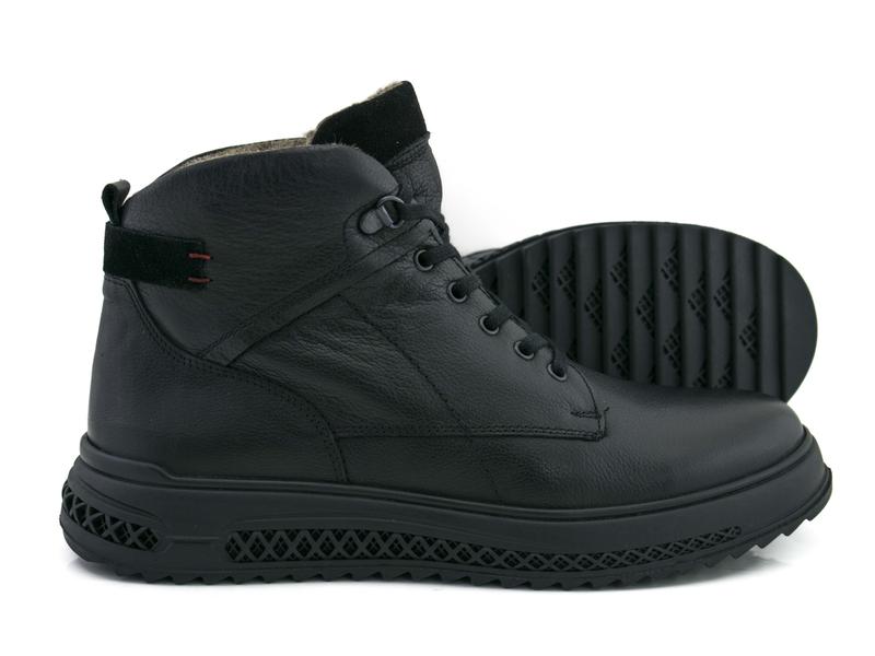 Оригинальные мужские зимние немецкие ботинки из натуральной кожи, противоскользящая подошва. Обувь в черном цвете утеплена мехом Германия, кожа, черный, зима, овчина