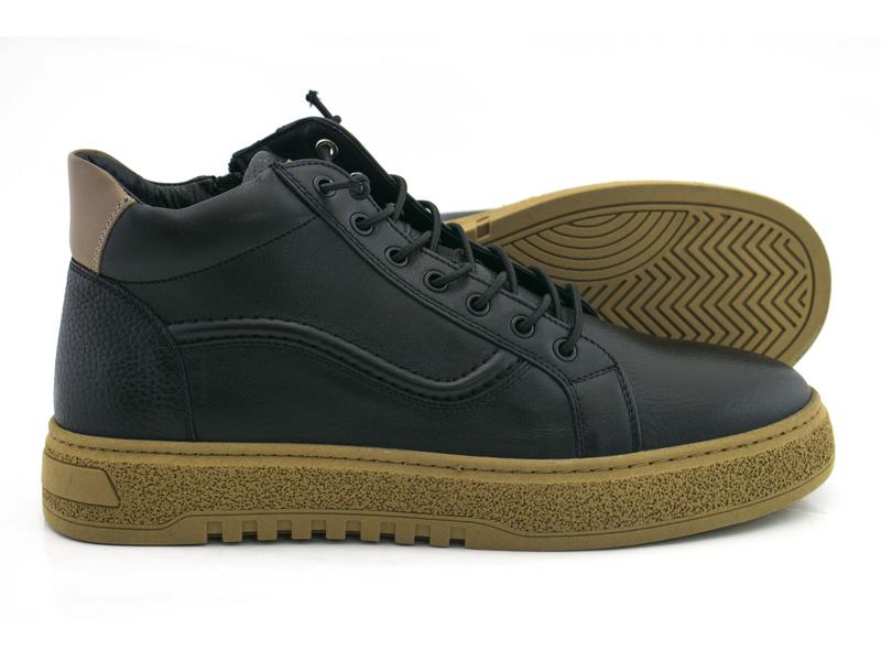 Мужские зимние спортивные ботинки из гладкой натуральной кожи. Обувь утеплена мехом, на змейке и со шнуровкой, в черном цвете. Украина, кожа, черный, зима, мех