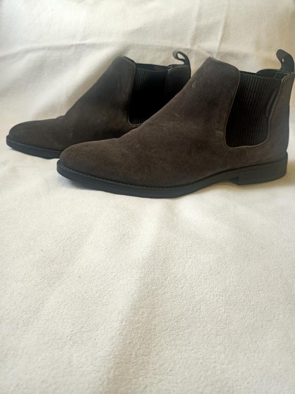 Взуття в дуже хорошому стані, але є нюанс(6,7фото). Пляма на лівому з внутрішньої сторони та невеличкі на правому зверху. При денному освітленні ледве помітні. Підійдуть на вузьку та середньої повноти ногу, так само стосується підйому. Всередині, там де пальчики, легесенька утеплююча мембрана. Устілка не виймається, тому точно заміряти важкувато. ~27.5-27.8. Наш 42 розмір.