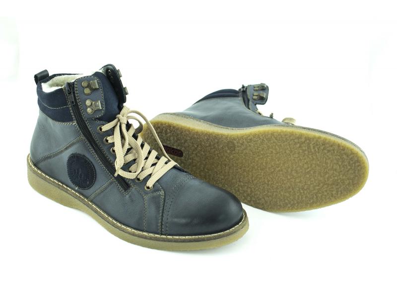 Мужские ботинки на шерсти. Модель на шнуровке и со змейкой, мягкая и тёплая. внедрение технологий Antistress - подошв и memoSoft-стелек; создание отдельного модельного ряда с ортопедическим уклоном: позволяют чувствовать себя комфортно людям с высоким подъемом, плоскостопием, увеличенной косточкой и т.д. Германия, кожа, синий, зима, шерсть