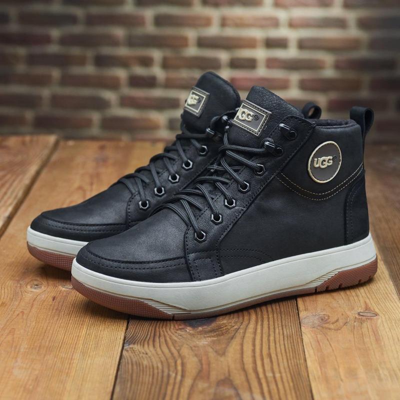 Стильні чорні зимові чоловічі хайтопи,черевики шкіряні з хутром,натуральна шкіра і хутро н...