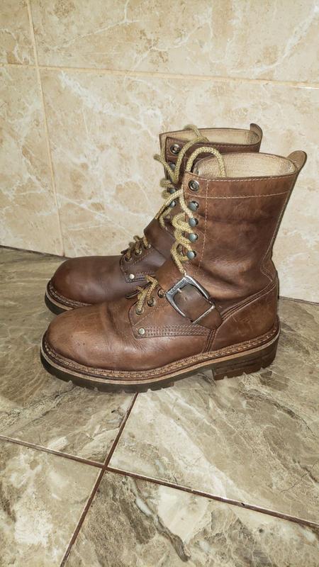 Черевики ART, розмір 42. Черевики із натуральної шкіри. Стан відмінний. Верх – товста міцна шкіра, підкладка – натуральна шкіра, підошва – натуральний каучук. Черевики зроблені дуже якісно, прошиті через штормовий рант методом Goodyear Welted. Часто навіть відомі фірми типу Red Wing встановлюють штормовий рант без подвійної прошивки. Тут усе без обману!