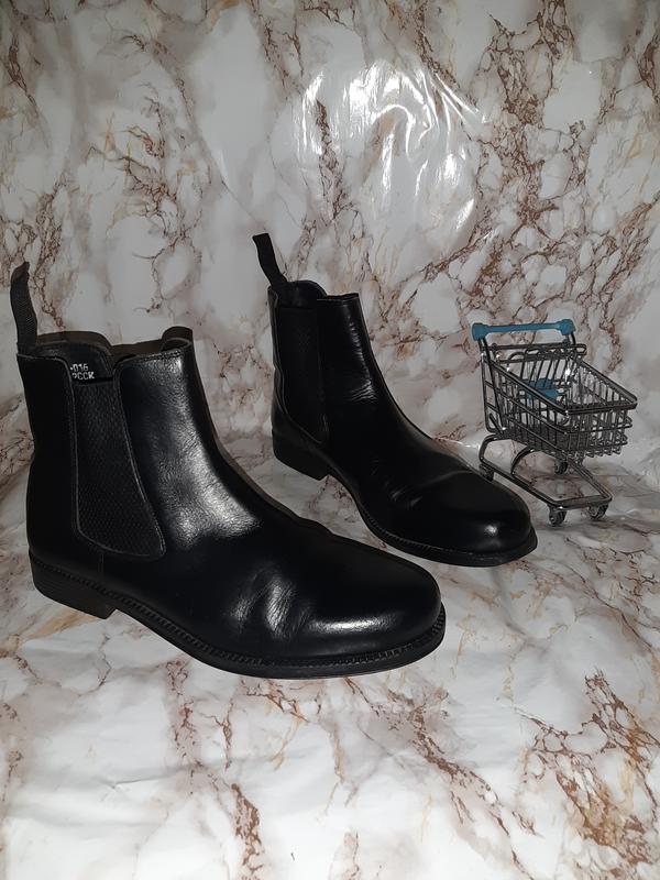 Чорні шкіряні демісезонні черевики челсі, із гумками-вставками з боків. Стильні, практичні та зручні. Розмір-42(8), по устілці-27,5см. Трохи стерті підбори і сліди носіння на підошві.