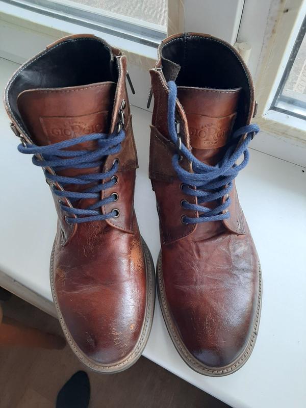 Ці черевики із колекції Azzurro розкривають динамічну універсальність взуття Giorgio1958. Для неформального, але незмінно бездоганного вигляду. розмір 40, стан загалом ідеальний, але є потертості, на фото видно. Якість неймовірна, натуральна шкіра.