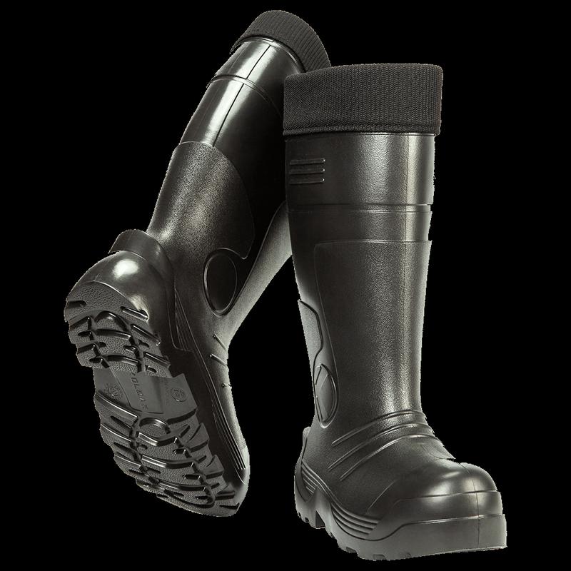Чоботи від польської фірми Kolmax - це сучасне взуття для активного відпочинку, призначене для повсякденного носіння при температурах до -50°C! Чоботи виготовлені з матеріалу EVA, що надає виробам амортизуючі властивості і еластичність навіть при низьких температурах. За рахунок спіненої структури, матеріал EVA є відмінним термоізолятором, до того ж взуття має легку вагу. Чоботи 100% водонепроникні, мають високу зносостійкість, анатомічну форму і відмінно сидять на нозі. Кожна пара комплектується теплю повстяною вкладкою з манжетом, яка легко виймається та, при необхідності, очищується та просушується. Вкладка має надійні шви, добре фіксується та тримає форму. Дана модель чобіт має додаткову посилену п'яткову зону з високою посиленою підошвою, що робить їх ще більш практичними. При виборі розміру чобіт потрібно враховувати, що розмір вказано без урахування вкладки, тому необхідно вибирати чоботи на один розмір більше, ніж ви носите зазвичай. Виробник - Kolmax Країна - Польща Стать - чоловіча Розміри - 41/42/43/44/45/46/47/48 Колір – Чорний Матеріал – EVA