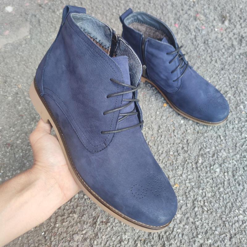 Зимние синие ботинки из натурального нубука. Универсальная модель на зиму. Размерная сетка: 41 – на стопу 27 см 42 – на стопу 27,5 см 43 – на стопу 28 см 45 – на стопу 29,5 см Перед оформлением заказа уточните у менеджера есть ли ваш размер в наличии