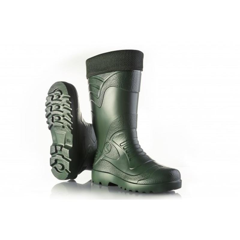 Чоботи від польської фірми Kolmax Medium ( з комірцем на зав’ язках) - ц е сучасне взуття для активного відпочинку , призначен е для повсякденного носіння при температурах до -30 ° C! Чоботи виготовлені ​​з матеріалу EVA, що надає виробам амортизуючі властивості і еластичність навіть при низьких температурах. За рахунок спіненої структури, матеріал EVA є відмінним термоізолятором, до того ж має неймовірно легку вагу, всього 668 грам - пара! Взуття 100% водонепроникне і має високу зносостійкість. Чоботи мають анатомічну форму і відмінно сидять на нозі. Верхня частина чобота доповнена захисним комірцем на зав ’ язках, що попереджає попаданню снігу чи води в середину. Кожна пара комплектується теплю повстяною вкладкою, яка легко виймається та, при необхідності, очищується та просушується. Вкладка має надійні шви, добре фіксується та тримає форму. При виборі зимових чобіт для полювання і риболовлі Kolmax потрібно враховувати, що розмір вказано без урахування вкладки, тому необхідно вибирати чоботи на один розмір більше, ніж ви носите зазвичай. Виробник - Kolmax Країна - Польща Стать - чоловічий Розміри - 42/43/44/45/46/47 Висота чобота - 3 0 см (без урахування комірця) Вага пари – 668 грам Колір – Зелений Матеріал – EVA