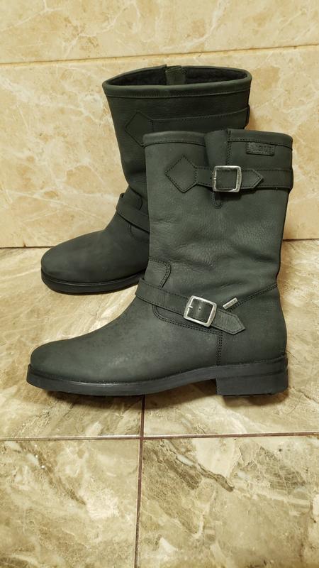 Чоботи зимово-осінні Aigle gore-tex, розмір 44. Стан нових. Верх - нубук відмінного вироблення. Підкладка - штучне хутро плюс мембрана Gore-Tex. Фірма французька, виготовлено в Португалії. Розмір 43,5-44. Устілка не витягується, відповідає розміру устілки 28,5. Чоботи прошиті. Міцні, стильні, не промокають та теплі - відмінний вибір на осінню та зимову негоду. Ціна нових приблизно 380 євро.
