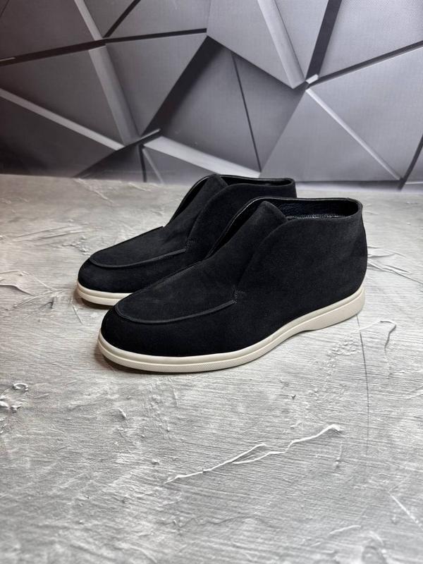 Чоловічі зимові замшеві високі лофери на байці/хутрі, демісезонні/ зимові черевики з натур...