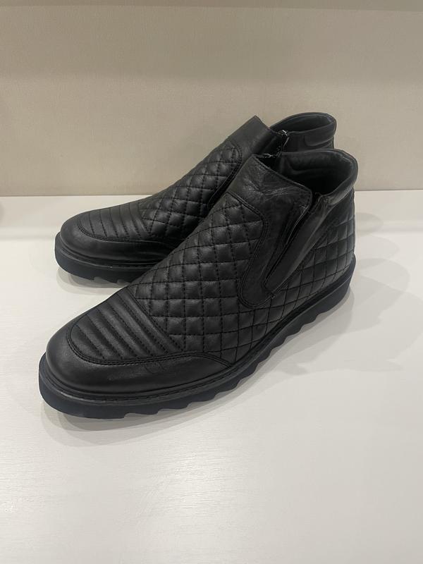 ЧЕРЕВИКИ ЧОЛОВІЧІ В ІДЕАЛЬНОМУ СТАНІ взувалися кілька разів Розмір 43(29 см) Натуральна шкіра Виробництво Туреччина Особисто купували у Стамбулі З одного боку змійка, з іншого резинка. Не утеплені, шкіряна устілка. 800 гр