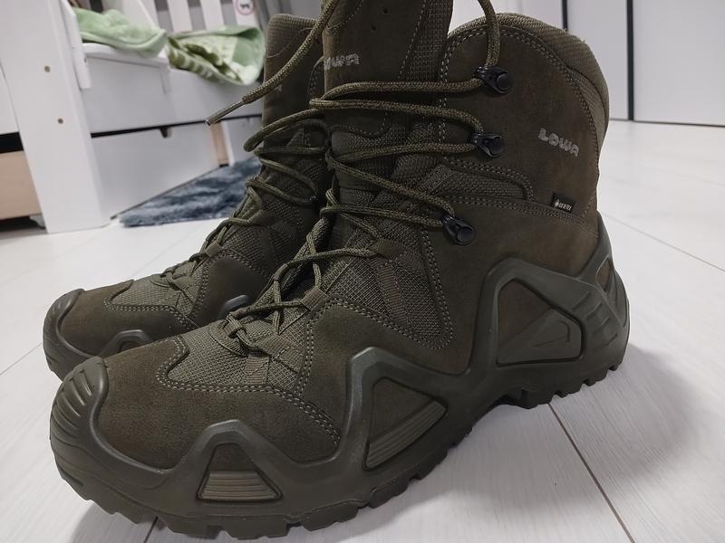 Lowa Zephyr MID GTX® TF – это тактические ботинки для походов за городом и по пересеченной местности. Их активно используют службы безопасности, военные разных стран НАТО, полиция. Они идеально подойдут для туристов, альпинистов и всех кто ценит качественную обувь для путешествий. Материал обуви – замша со вставками ткани Cordura. Внутри ботинок имеет мембрану Gore-Tex, которая защищает ногу от намокания и эффективно отводит влагу с ботинка. Подошва отлично защищает от повреждений и сохраняет сцепление практически на любой поверхности. Характеристики: Верх – натуральная замша (толщина 1,4-1,6 мм) + кордура; Высота - 14,5 см; Подошва – Lowa “Cross”; Шнуровка – закрытые петли-крючки; Трехслойная съемная стелька Сlimate Сontrol®; Мембрана – Gore-Tex®, водонепроникна; Подкладка – Сlimate Сontrol®. Причина продажи,не подойти размер.