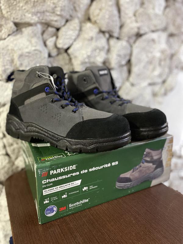 Робоче взуття Нове! Бренд Parkside Мембрана+натуральна замша -захисний твердий носок -підошва не пропускає електричний струм -захист від проколу подошви -присутні світло відбиваючи елементи В наявності розмір: 42 43 44 45